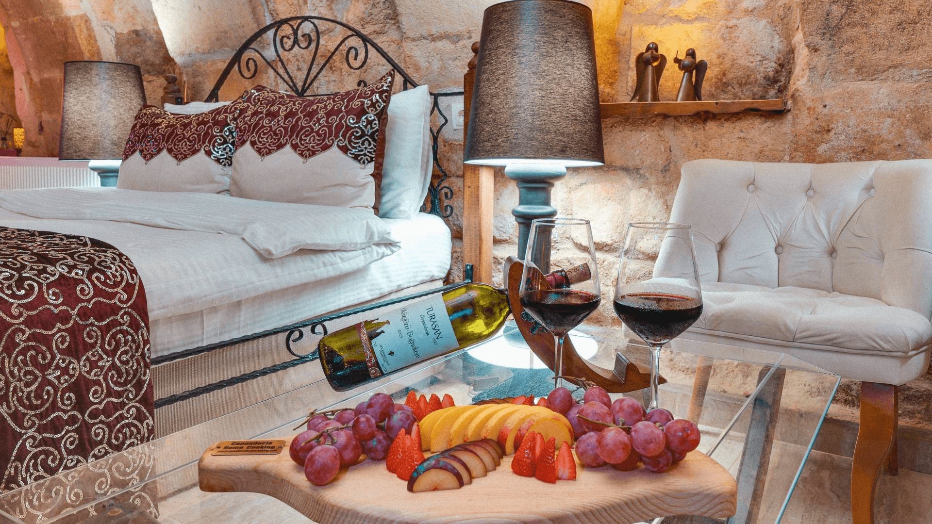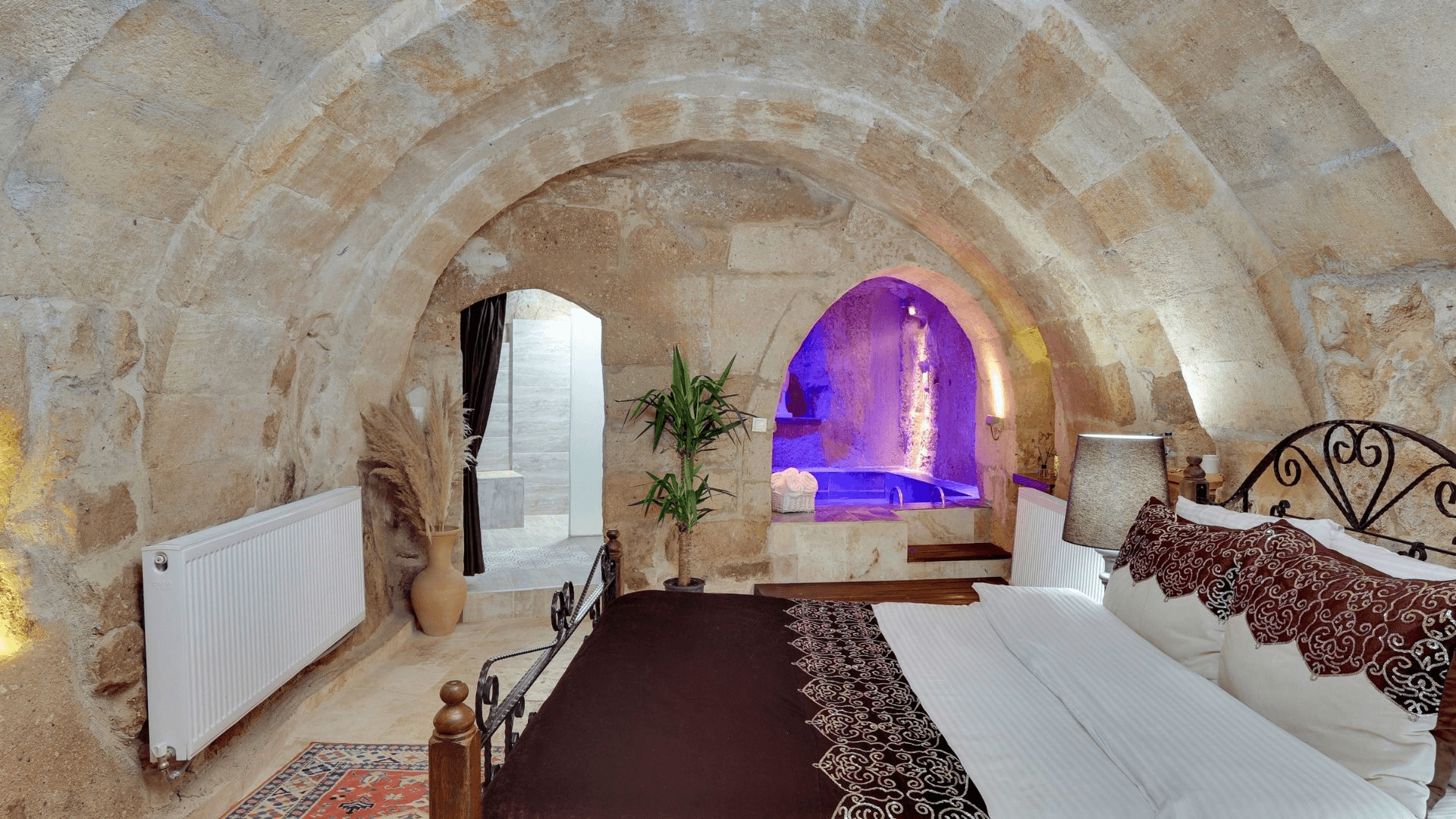 Romantik detayları, özel Türk hamamı ve ısıtmalı, jakuzi fonksiyonlu havuzuyla bu oda, çiftlerin özel anları için ideal. Aşk ve rahatlama, bu odada bir araya geliyor. Sıcak taş dokulu, romantik bir süit. Otantik kemerler ve yumuşak aydınlatma çiftler için huzurlu bir atmosfer oluşturur. Geniş banyoda yer alan Türk hamamı dokunuşu ve Atelier Rebul banyo ürünleri, bakım rutininizi bir üst seviyeye taşır. Odanın içinde size özel kapalı havuz bulunur; günün yorgunluğunu atmak için ideal bir ayrıcalık sunar. Rahat oturma alanı, kitap okumak ya da plan yapmak için keyifli bir köşe yaratır. Ortahisar’ın sakin ritmini sevenler için konforlu, zarif ve unutulmaz bir kaçış deneyimi.